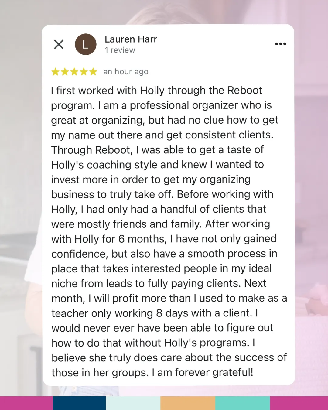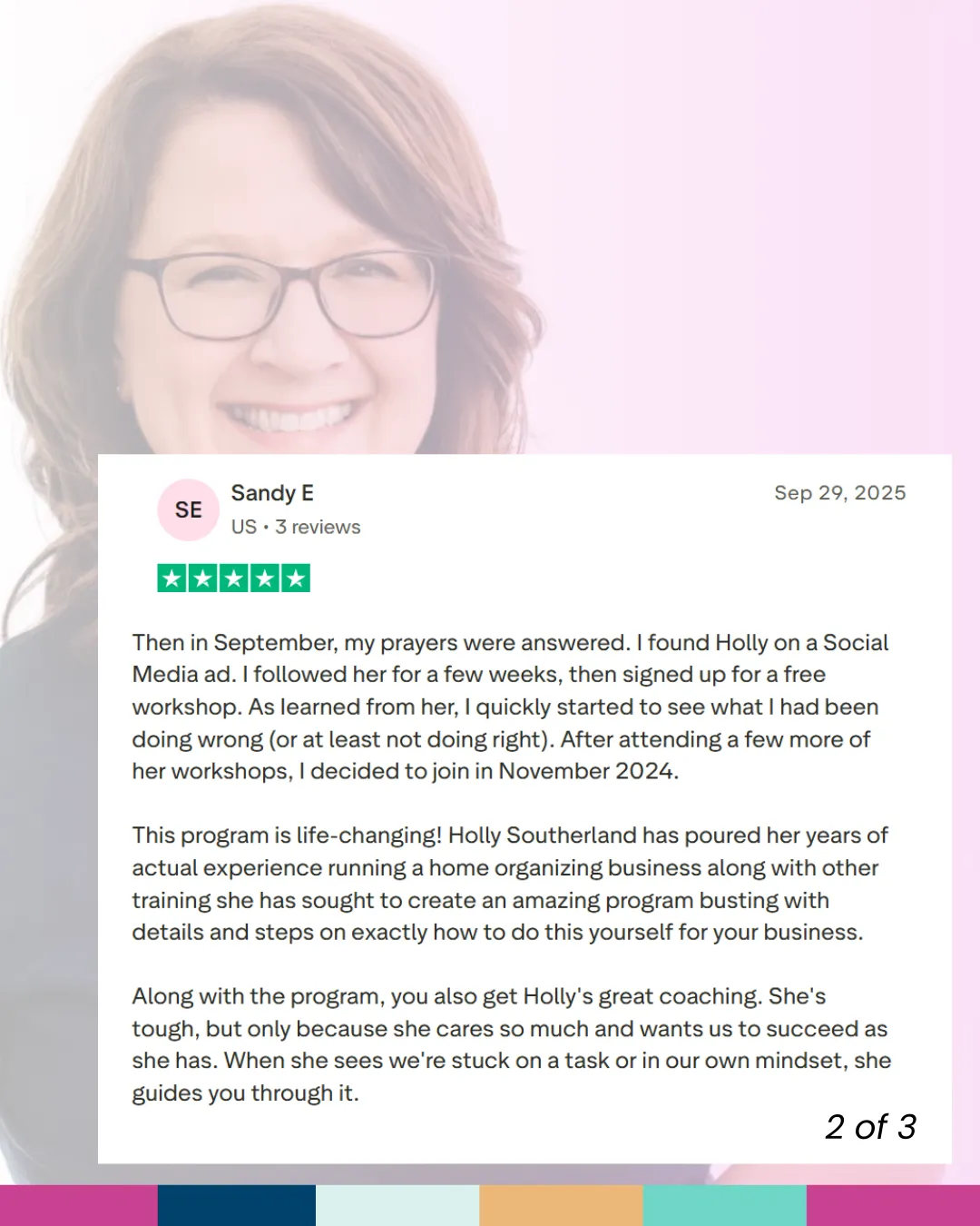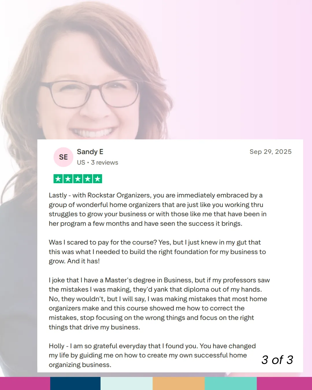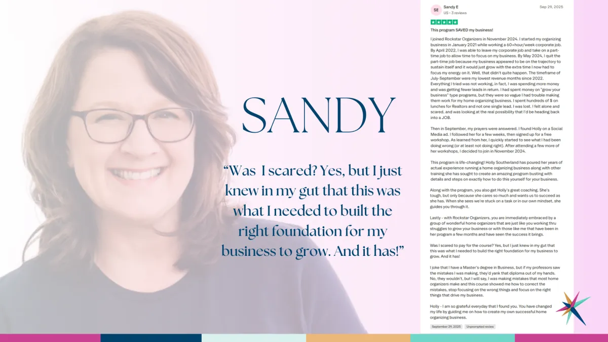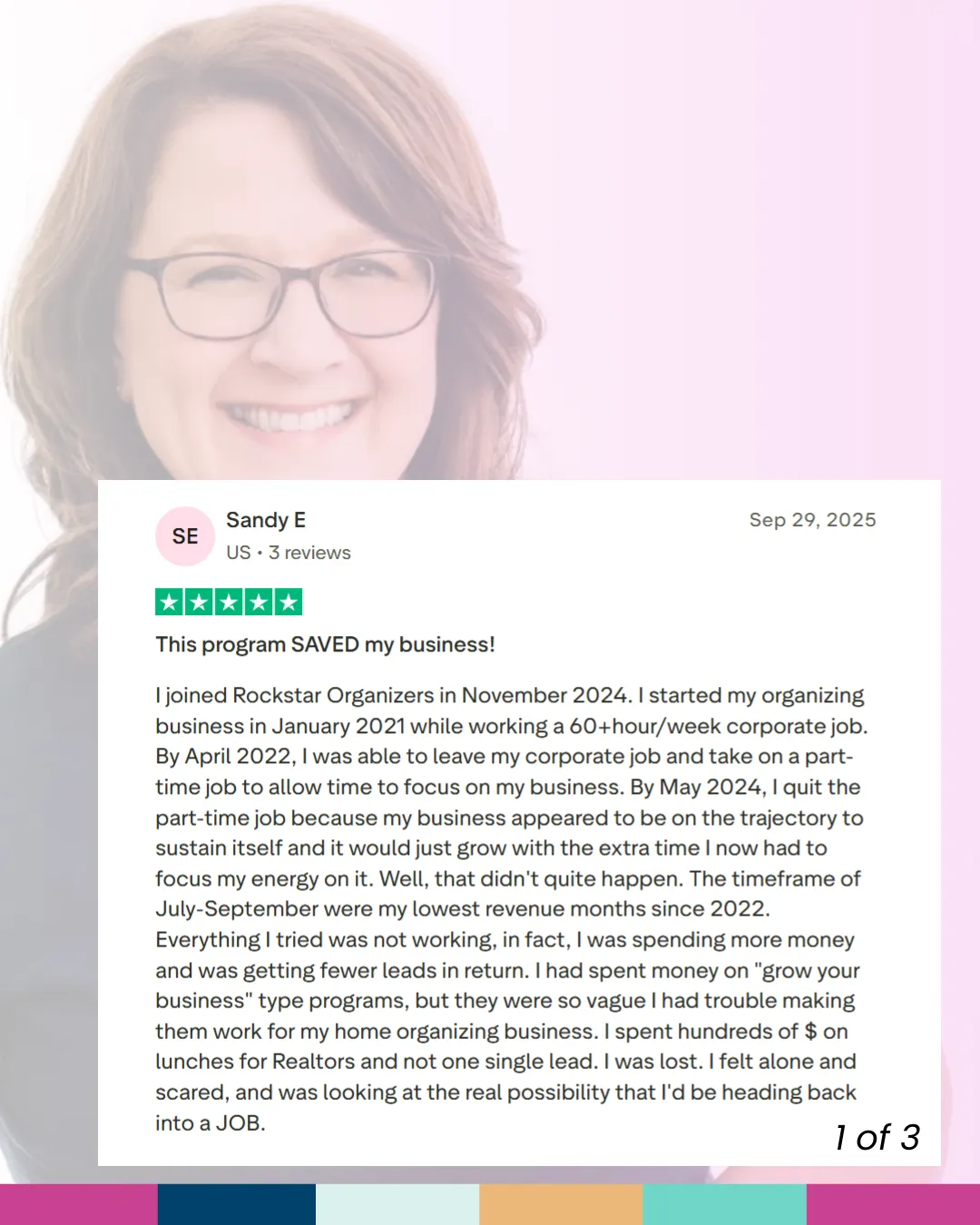 "Everything I tried was not working, in fact, I was spending more money and getting fewer leads in return. I had spent money on 'grow your business' type programs, but they were so vague I had trouble making them work for my home organizing business.